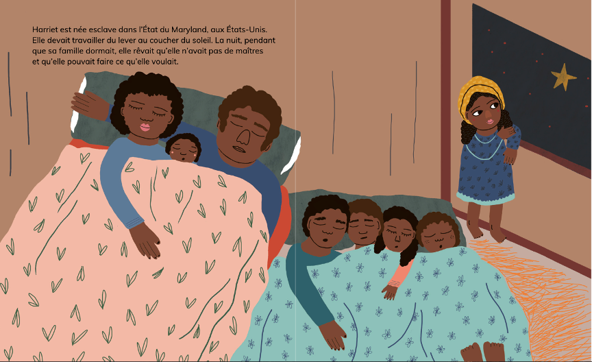 Harriet Tubman est née aux États-Unis dans une famille d’esclaves. Une fois adulte, elle a réussi à s’enfuir vers le nord du pays, où l’esclavage était interdit. Elle est ensuite retournée dans le Sud pour aider d’autres personnes à accéder à la liberté. Cette femme intelligente et courageuse a inspiré plusieurs générations d’Afro-Américains et d'Afro-Américaines dans leur lutte pour l’égalité et les droits de la personne.