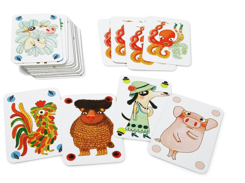 Le principe est simple : annonce la carte que vous posez (poilu, tout nu, vêtu ou à plumes) et décidez si vous dites la vérité… ou si vous bluffez. Mais attention! Si un adversaire crie « Pipolo! » et vous démasque, vous ramassez toutes les cartes. Et si l’accusation est injustifiée… c’est lui qui hérite de la pile!