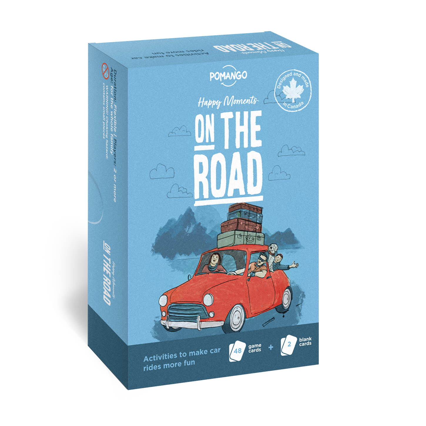 The On the road - Happy moments game offers 48 simple and fun activities to reduce impatience and boredom during car trips. To do day, night, on the highway, in the countryside or in town! Purpose of the game: Draw a card that will determine the activity for the next few minutes / hours. It's easy!
